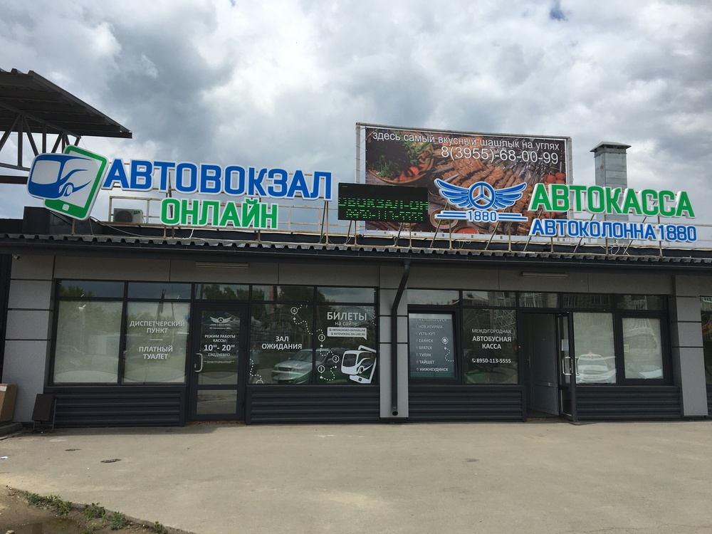 Здесь Вы можете приобрести билеты на рейсы проходящих автобусных маршрутов 566, 593, 599, 608, 625, 630 и 641, следующие до Саянска, Куйтуна, Тулуна, Нижнеудинска, Тайшета, Братска, Железногорска-Илимского, Новой Игирмы и Усть-Кута. Оформить возврат, оформить льготный билет, распечатать электронный билет