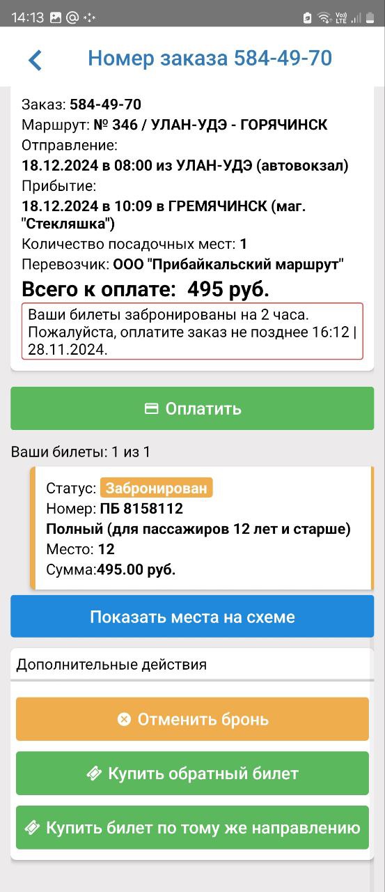 Оплатить в мобильном приложении "Автовокзал онлайн"